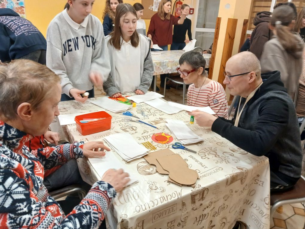 Nasi Mieszkańcy wspólnie z zaproszonymi gośćmi śpiewali kolędy, a także uczestniczyli w warsztatach plastycznych, podczas których powstały piękne, kolorowe prace. Wspólne działania sprzyjały integracji, rozmowom i wzajemnemu poznaniu się, przynosząc wszystkim wiele uśmiechu i pozytywnych emocji.